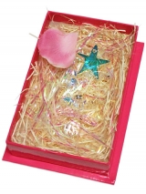 一番上に大きな☆を、そして、7つの飾りが天使ちゃんの上に