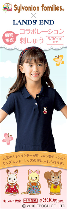 日本ランズエンド株式会社 さんのキャンペーンを紹介します シルバニアファミリー×ランズエンド コラボレーション刺しゅう 5/30(日)まで シルバニアファミリー×ランズエンド 期間限定 コラボレーション刺しゅう キャンペーンを実施中!ですよ http//wwwland… 2010/05/14