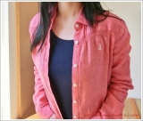 胸元と背面にシャーリングを入れて、女性らしさと着心地をアップ。胸回りにゆとりを持たせて、ブラウスのようなシルエットに仕上げました。一枚で着るのはもちろん、ジャケット感覚で羽織るのもおすすめです。気温が不安定なこの季節、着こなしの幅が広いこのシャツは活躍必至の便利アイテムです。