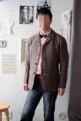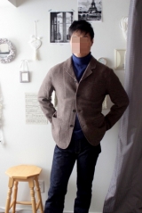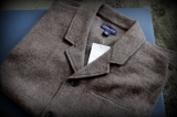 ウールのニットを縮絨――湯につけ縮ませて目を詰め、ふっくらと厚みを出し、保温性、防風性を与えた素材、“ローデラーズ・ニット”を使ったジャケット。裏地なしで、カーディガン感覚の軽さに仕上げました。フォルムに立体感を出すために入れた袖や肩ヨークの切り替えがデザイン・アクセントにもなっています。ニットの特徴を生かして口部分をステッチ始末にした、軽やかな胸ポケットのデザインもポイントです。快適、かつ上品に着こなせる大人のカジュアル・ジャケットとして、幅広く活躍する一着です。