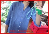 商品No.401665 ウォッシャブル・リネン・クロスオーバー・シャツ/七分袖 (無地)4色