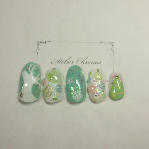 ダスティパステルを使いベースカラー+ホログラムにトナカイ、オーナメント、雪の結晶、ツリーをモチーフとし描きました クリスマスはコントラストが強いカラーが多いのであえて彩度は抑え気味に、でも繊細で大人可愛く華やかなデザインを目指しました 写真ではわかりにくいですが、モチーフは立体的に作りオーナ… 2014/12/11
