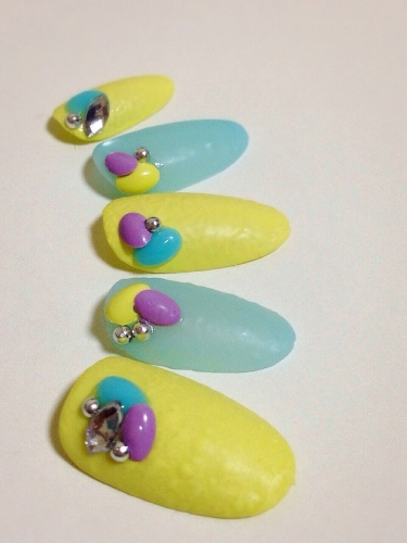 春、夏にピッタリなシャーベットカラーで作りました 使用したジェルは、PS03 レモンシャーベット、SH06 アクアブルー、PS07 ボヘミアンボヤージュです 表面をスポンジでポンポンして、デコボコにしてからマットコートで仕上げましたさらっとして、しっかりとしたマットになり、とても気に… 2015/02/26