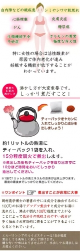 ルイボスティーは老化の原因であるカラダの余分な活性酸素を除去し、カラダ全身の若さを保つすばらしいお茶です。このルイボスティーは身体の老化による機能障害などにも嬉しい酵素がたっぷり含まれています。