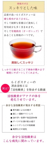 また最高品質のルイボスティーを使ったサプリメント【ルイボスプラス】は活性酸素を除去する数値が非常に高く、評価して頂けております。