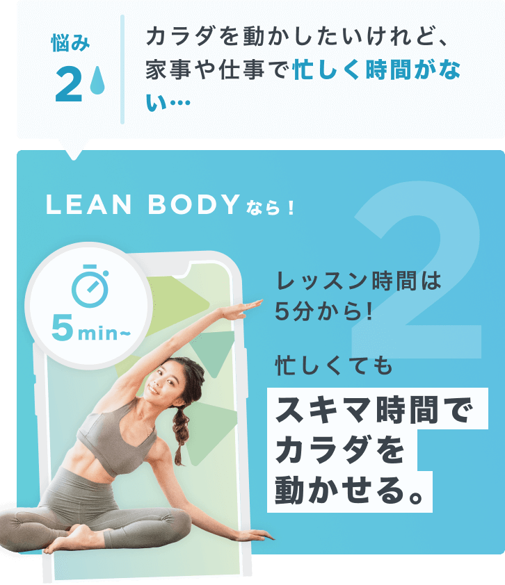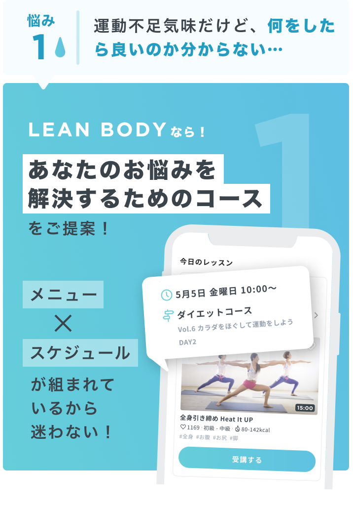 LEAN BODYは「世界中の人々に最高の資産(ココロとカラダ)を」をミッションに掲げ、いつでもどこでもスマホやパソコン1つでフィットネスができるオンラインフィットネス動画配信サービスを提供しております。
