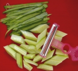 指一本で、誰にでも簡単に野菜の皮むきからカットまで手早く出来るピーラー感覚の快適スライサー。