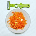 #ののじ #糸そーめん削り のお試しの時間です(^_^) 野菜をピーラーで削るだけで、極細のそうめんのようなように野菜ができあがると言う商品です。 うまくやれば大根のツマなんかもできるようです。 3回使用しましたが、いずれも私はあまりうまく使いこなせなかったので、もう少し練習が必要そうです。 細切りの酢の物が面白いかなと思いましたが、きゅうりは種子があるのであまりきれいに出来ませんでした。 人参の細切りはまあまあうまくいきました! スープ餃子に入れてみました。 火の通りも早いですし、食べやすくなりました。子供でも食べやすかったようです。 大根のつまは、大根があまり新鮮ではなかったせいか見事に失敗しました。 大根のつまが大好きなので練習しようと思います。 すべてに共通してるのですが、 1回目はきれいに削れるのですが、同じところをもう一回削ってもうまく削れないようで、野菜をくるくる回しながらやると良いのかなあと感じています。 もっと良い方法が見つかるまで練習が必要そうです。 あと歯が目詰まりしたりしてうまくいかなかったり、、 上手にやれたらとても面白い商品だと思いました。 #monipla #ののじファンサイト参加中 2017/05/27