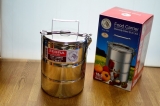 こちらの16×3フードキャリアは、見た目以上にたくさんおかずを詰められ、家族みんなの大きめおむすびやから揚げやウインナーから卵焼きまでどんとおまかせ。開閉はホルダーを上げ下げするだけでとっても簡単便利。大きめの取っ手が付いているので、持ち運びもオシャレです。また、ちょっと無機質に見えるステンレスは、どこか昭和を思いおこさせる懐かしさがあり、使用の上でも無駄のない機能美があります。プラスティック製やパッキンのあるものと比べ洗い上がりに油汚れのべたつきや匂い・色が残らずさっぱりと清潔です。それぞれの容器とフタ、留め金は、取り外し可能で洗浄しやすい便利な構造となっています。傷がつきにくい丈夫なステンレス容器は、汚れや菌が入り込みにくく夏場や梅雨時期の衛生管理もしやすい素材です。何よりも丈夫なので、安心して永く使い続けられます。
