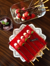 もうすぐいちごも終わり(/ _ ; )小粒で可愛いのがお買い得だったので何か簡単なものできないかな?赤い硝子のお皿を使いたくてこんな風に…苺にクリームチーズの帽子極細ポッキーを串代わりにして全部食べれるよう葉っぱはミント(#^^#)黒胡椒ガリっで大人の味に***ルノーブルさんの「モ… 2015/04/28