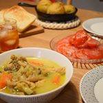 ばんごはん . 名古屋コーチンのターメリックスープ 冷しトマト ハッセルバックポテト トースト . 名古屋コーチンのお肉が手に入ったのでスープに。普通の鶏肉と味も食感も全然違う😯おいし〜 . 直輸入のブランド洋食器専門店ル・ノーブルさんから RCRhome&Tableのサンビームプレート18cmをいただきました✨ 早速トマトサラダを盛り付けてみる☺️涼しげ〜 . ルクシオンという新素材のガラスウエア。軽くて食洗機にも対応してる使い勝手の良いガラス皿です🔮 . #うにん飯 #晩御飯 #ばんごはん #おうちごはん #おうちごはんlover #クッキングラム #名古屋コーチン #鶏肉 #スープ #ガラス皿 #マイニオ #MYルノーブル #monipla #ブランド洋食器専門店ルノーブルファンサイト参加中 2018/06/08