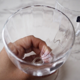 「リリウム/LILIUM」は、ユリの花のように可憐な脚付きのグラス。カップの表面には、うねるようにさりげないモールが入れられ、キラキラと光りを放ちます。デザートなどいろいろな使い方を楽しめます。