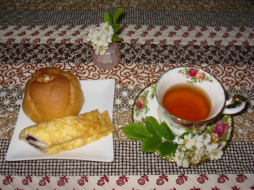白い野薔薇の花が咲いていましたので、野薔薇をオールドカントリーローズのカップ&ソーサーにアレンジしてみました ムーンライトローズでは、お庭のハーブを摘んでハーブティーを注いでありますブレンドは、レモングラスとレモンバームとスペアミントです 2013/04/03