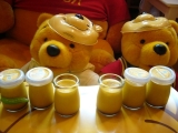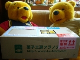 「リスさんからお届け物だよ」「リスさんじゃないよ菓子工房フラノデリスさんだよ」「わぁい!プリンが入ってますって!」「早速、食べよ」「ハロウィンのスイーツだからハロウィンっぽく食べないと」「いっただきます」「しっとりしたかぼちゃのプリンおいしいね」 2009/10/31