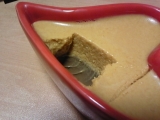 ずっと楽しみにしていた 『ショコラアムール』 赤いリボンとハートの容器が目を引きますね やっとで届きました とても丁寧な梱包に 優しさが伝わってきます 中身は ハートの先が少し沿ってるのが大人っぽさをかもし出してます カラメルソースをかける前に、まずはそのままで みて… 2011/02/19