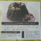 先日のクリスマスケーキの紹介のご縁で、フラノデリスさんのフォンデュショコラを頂きました!デザインが可愛い箱フォンデュショコラは、すごくずっしり!ということは、食べる前から濃厚なんだと想像できちゃいます私、チーズケーキも好きですが、チョコも好きです!!まず、切った感じ濃厚さが分かる切り口♪食べてみる… 2012/01/06