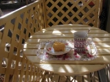 おとといから楽しませていただいておりますフラノデリス頒布会11月のスイーツのドゥーブルフロマージュでおうちカフェしましたぁラッキーなことに、今日は晴れてる!!今度はデッキデッキマイデッキにて小さいデッキですが少しさむーいけど、なんだか気持ちよかったぁ!!お日様の下で… 2009/11/23