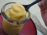 コチラのかぼちゃプリンはですね、牛乳瓶の小さい感じの容器に入っていて、食べ終わった後はまた、自家製プリンを作ったりするのに丁度いい容器ですよ 早速開けてみると 2009/12/18