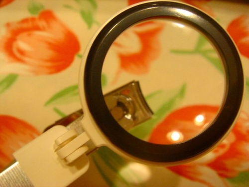 レンズは取り外しが出来 付ける場所も調節が出来る 切った爪を収納する場所もある 小さな子の爪や ペットの爪を切るのにも便利 ただ普通の爪きりにとっては 余計な物が付いている訳で その分ちょっと重く感じるのは仕方ないか もうちょっと軽量化出来ても いい気がしないでもない… 2010/06/22