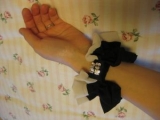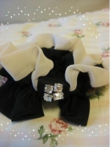 ベビーピンクとシックなブラックのツートンカラーのシュシュです。