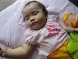 娘ちゃまのおひるごはん…にんじんのリゾット(とは名ばかりの軟米+にんじんスープ+野菜スープ)とバナナ1/3本をそこそこ食べたあと…驚愕の事件が(笑) よだれをいつも以上に垂らしてくる…お腹が空いているのか??? バナナを潰してあげる…欲しがる欲しがる…あっという間にバナナ1本完食!!! 生後… 2012/08/09