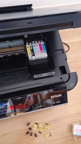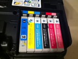 こちらのモニターに当選しました!( ´∀`)インクコンシェルジュファンサイト参加中黒は純正インク、残りは届いたインクです!黒は、まだ沢山あったけど、他のは空っぽ黄色のフィルムを剥がして、黒の破損防止ストッパー(名前が分からないから自分でネーミング)を外し、セット!かちってなったらOK( ´∀`)… 2013/11/07