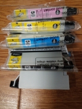 ずっとインクは純正を使っていたけれど プリンターも少々古びてきたし ここらでリサイクル品を試してみましょ ノズルは簡単にはずれて、いざ、セット 認識してくれるか不安だったけど 何の問題もなく印刷完了 とりあえず1色無事使えました もうちょっとであと2色無くなりそうだけど 安心… 2014/01/08