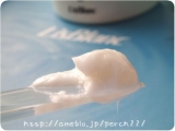はじめは真っ白だったクリームが、透明になじんで、
