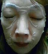 コットンは伸びるので、空気を追い出しながら、顔になじませて。