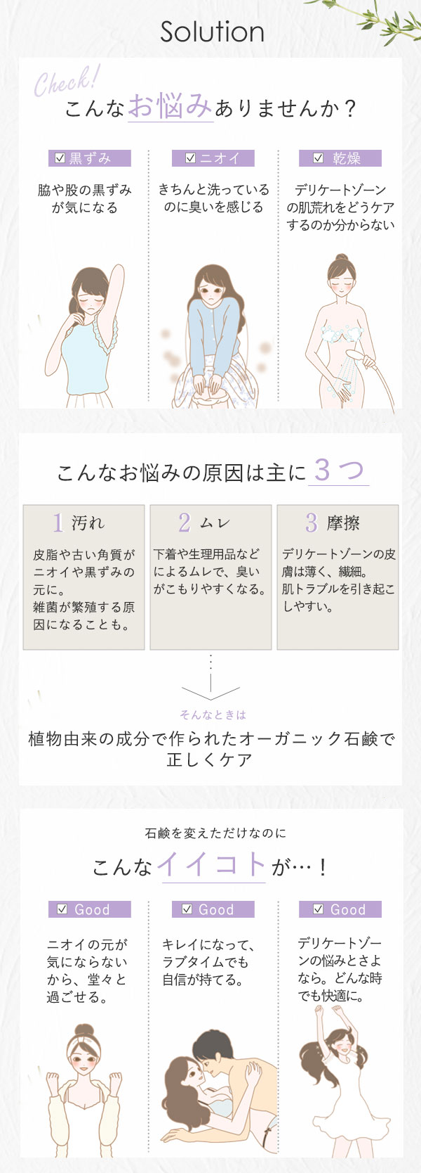 ・臭いや黒ずみが気になって、ラブタイムに集中できない(自信が持てない)