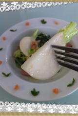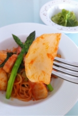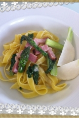 Love Farm さんからやってきた「春野菜&生パスタ」の中からピチピチ色白の「春かぶ」を使って「ニューオークボの生パスタ」をいただきました ニューオークボさんの生パス 2013/04/02