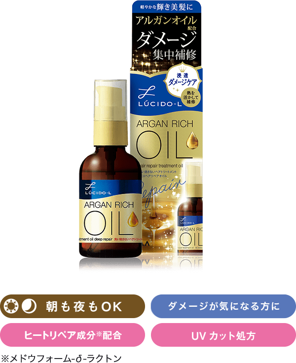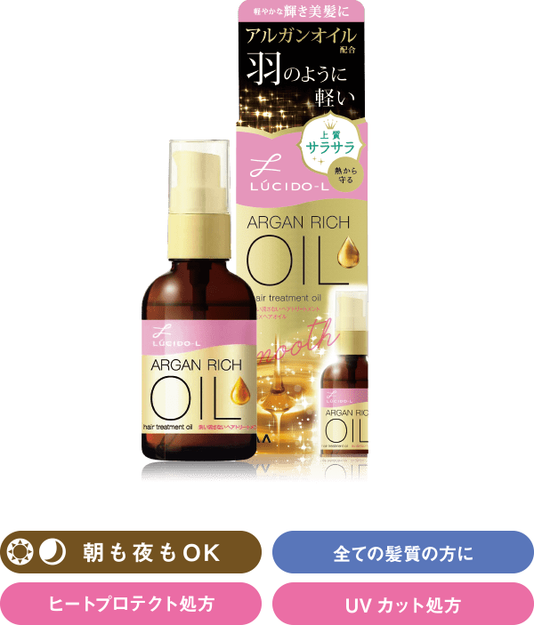 ・髪1本1本を潤いコーティングする超高圧処理アルガンオイル※配合
