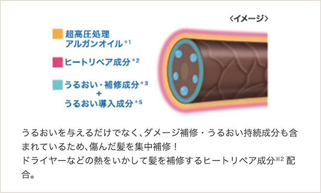 ・ヘアアイロンやドライヤーの熱をいかして髪を補修するヒートリペア成分※配合