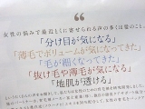 いつからだろう前髪が決まらないことに悩む日々から分け目が気になる日々になったのは♪いつのことだか 思い出してごーらんそういえば、秋は抜け毛のハゲしい季節なんですって(季節はもう冬ですがー)なんと春の3倍! 3倍! 3倍! さーんばーい!うるへーでもこれは自然なことなので不安に思う… 2012/11/13