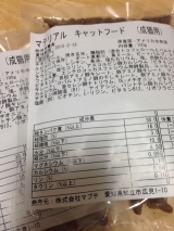 マブチさんの マテリアルキャットフード 成猫用 を ハルがいただいてみました 100g×2袋でこのくらいです♪ 原産国はアメリカ 原材料 チキンミール、挽き玄米、鶏脂肪(混合トコフェロールとパルミチン酸アスコルビルにて保存) オート麦割り、魚ミール、ビートパルプ、ナチュラルチキンフレ… 2014/11/10