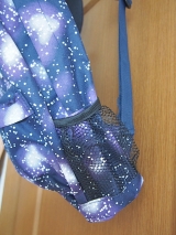 背部分にはメッシュ素材を使用してムレにくく、サイドには便利なメッシュポケットをつけました。