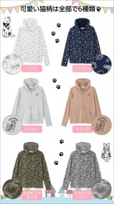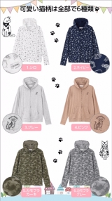可愛い猫柄のパーカは風合いの良いストレッチ素材なので