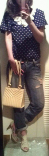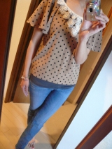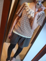 先日チラッと記事に写真載せましたがコチラマガシークさんからラグナムーンの「パールバテンドットTOPS」届きましたお色はベージュです袖がヒラヒラパールバテンレース×ドット生地がかわい過ぎ!!早速着てみました中には黒のキャミを着てデニレギに合わせてみましたうん、着心地いいです!いつものデニレギが… 2012/04/04
