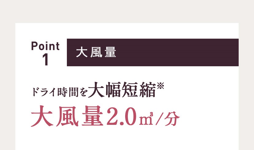 ◆ドライ時間を大幅短縮※大風量2.0㎥/分