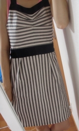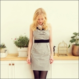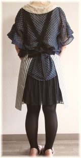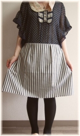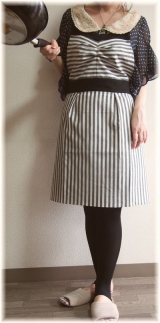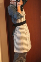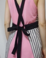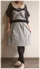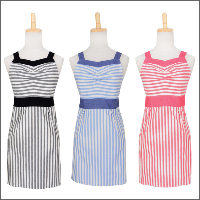 ボーダー×ストライプの柄使いでスタイリッシュな印象のワンピースエプロンです。