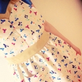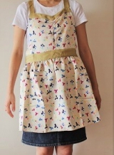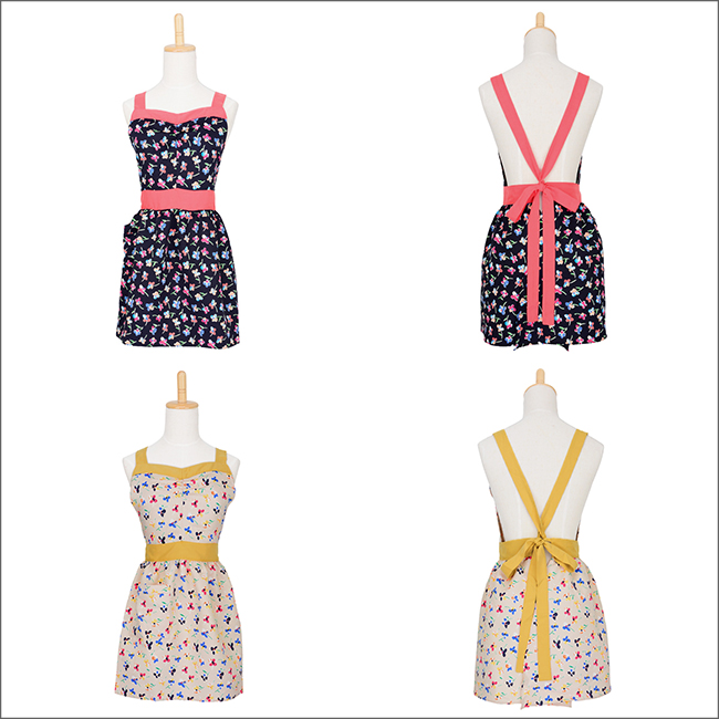 マルチカラーのフラワープリントがスウィートな印象のワンピースエプロンです。