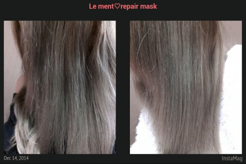 私の髪の毛はブリーチ系です。ドライ後の比較を見て一目瞭然!ダメージ、CMC不足で、まとまりの無い状態でしたがLe mentを使わせて頂いた髪は、しっとり、艶やかさが出ました。うねりも無くなりアイロン要らず!翌朝迄、この状態が続きました 2014/12/14