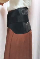 腰をしっかりと保護・固定する縦幅20cmのワイドコルセット。軽さと通気性◎滑車式補助ベルトで固定力の調節が楽々。