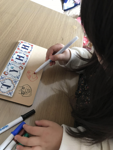 5歳女児に好きなように描いていいよ、自分のお部屋が解るようにしてもいいし、トイレのドア用に描いてもいいよ、と渡してみてました 本人は、まずこの壁に掛けたいと、掛ける場所を決めてから、山の風景を描いて額縁のように飾りたくなったみたいですパズルが壁にかけてあるので、そのイメージだったようです … 2019/03/05