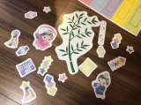 玄関や冷蔵庫に貼って簡単にデコれて、貼りかえて遊ぶこともできます。