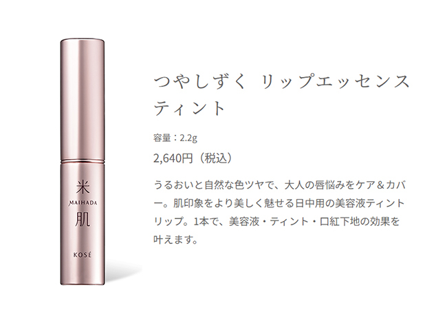 ・当選賞品:米肌 つやしずく リップエッセンス ティント
