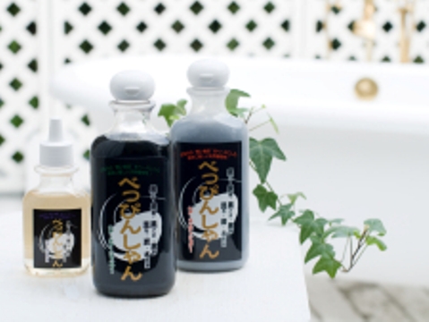 特に当店の目玉商品である『べっぴんしゃんシャンプー・コンディショナー・エッセンス』は旧指定成分無添加のうえ、黒い食品を主成分として作られた自然派ヘアケア商品で皆様にご好評をいただいております。