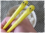 とてもかわいいお箸をいただきました しかも名前入り バナナみたいなきれいなイエローカラーがPOPでかわいい おちゃめなFaceにテープが洋服になってるのも粋だね 今回RINは筆記体で名入れさせてもらったんだけど、このほかにも 楷書体、丸文字、行書体、Century体、そしてひら… 2013/02/06