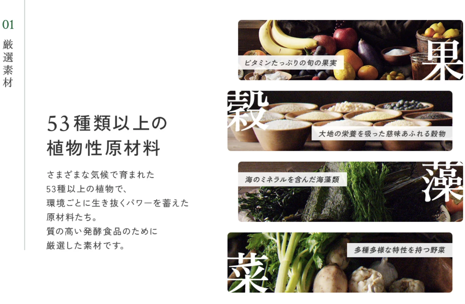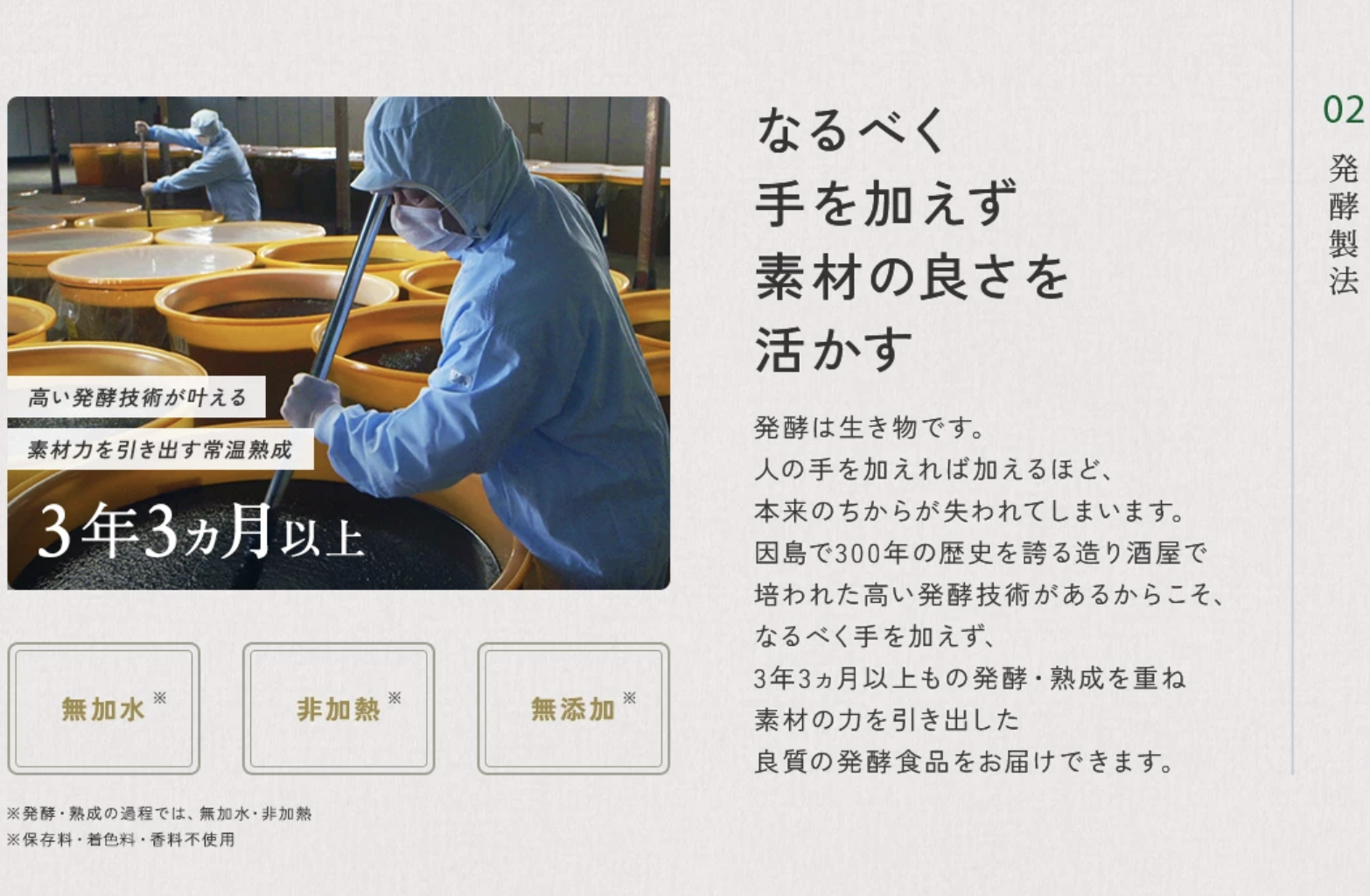 日本国内を中心に選びぬかれた53種類以上の植物性原材料をじっくり3年3ヵ月以上かけて発酵・熟成。余計なものは加えず、つくられています。