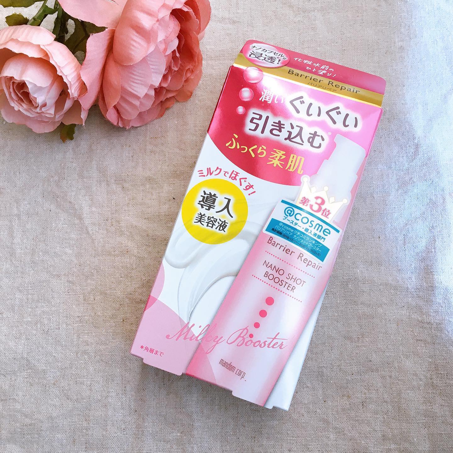 マンダム様の「バリアリペア ナノショットブースター」をモニターさせて頂きました🎁 こちらは、いつものスキンケアの前に使うミルクタイプの導入美容液です。 お肌を柔らかくほぐしてくれることで、化粧水のなじみも良くしてくれます✨ ♪゚+。+゚♪゚+。+゚♪゚+。+゚♪゚+。+゚♪゚+。+゚♪゚+。+゚♪゚+。+゚♪ 使ってみたところ、伸びが良いミルクでべたつきません。その後の化粧水が塗りにくくなることがないのはもちろん、お化粧がよれることもありません。 化粧水だけだと、だんだん時間が経つにつれて乾燥を感じることもあったのですが、こちらの「バリアリペア ナノショットブースター」を使うと、そのようなことも感じません🥰 乾燥が気になるこの季節、オススメです✨ #導入美容液 #バリアリペア #ナノショットブースター #ブースター #おこもり美容 #おうち美容 #プチプラコスメ #monipla #mandom_fan